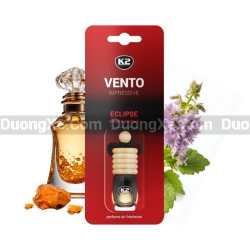 K2 Vento Impressive Eclipse là sản phẩm nước hoa ô tô cao cấp, mang đến hương thơm đầy mê hoặc với cảm hứng từ những dòng nước hoa nổi tiếng. Phiên bản này không chỉ đơn thuần là một chai nước hoa mà còn là một món phụ kiện sang trọng, giúp nội thất xe của bạn trở nên tinh tế hơn.